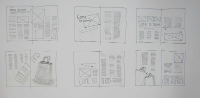 Experimenting with different layout designs by quickly sketching out thumbnails.